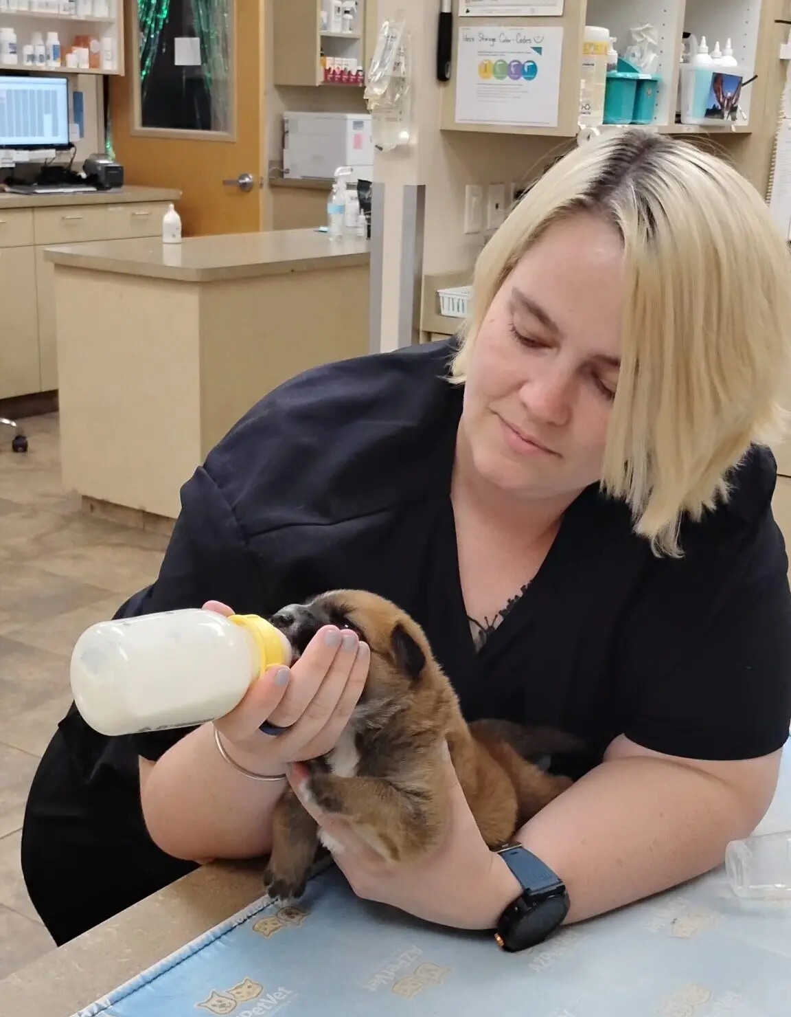I was taught how to deal with medical emergencies, but it’s different when it’s right in front of you. A dog was brought in, having a grand mal seizure. I froze. I felt mad at myself, but they assured me that everybody’s done that. Then, they taught me what was done in a situation like that.