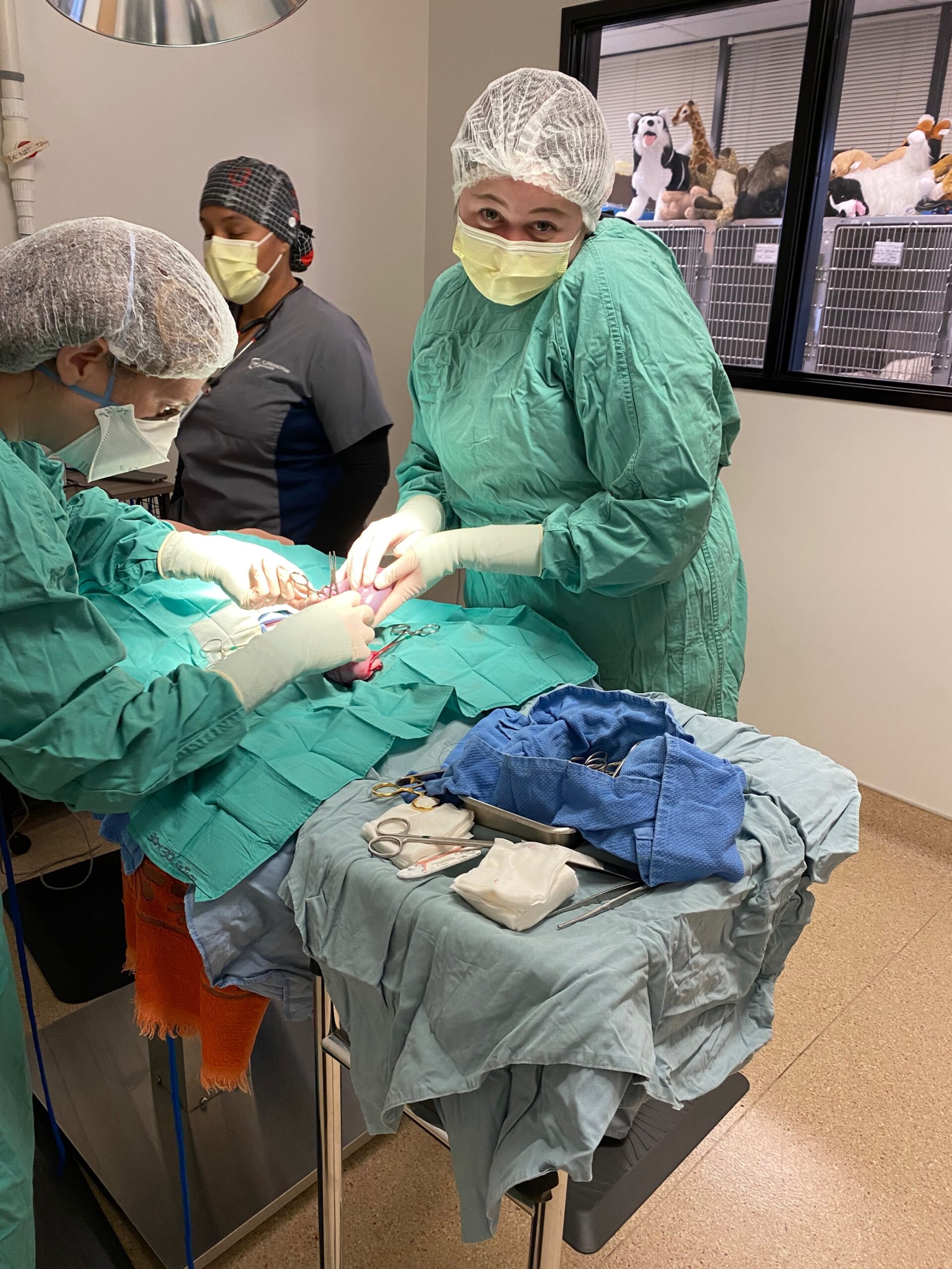 Now we’re in surgery, doing dentals, spays and neuters. We’re really hands on with the animals now. We work in groups of four students. Each student has a different role in every procedure, and then we rotate the roles, so every student gets to do a role twice. Like one week you’re an anesthetist for spays, the next week you’re working a dental job.