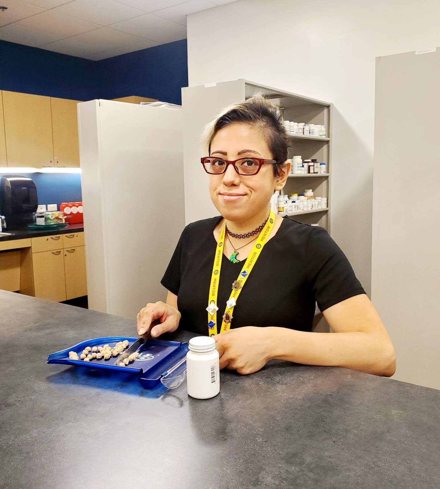 Alex Mulleneaux values good health for a very personal reason: she hasn’t always had it. When she was just three years old, Alex was diagnosed with leukemia. Her life was saved two years later by a bone marrow transplant from her infant brother. Three years ago, at 29, Alex was diagnosed with congestive heart failure and was, until recently, taking 20 pills a day. Those life-threatening experiences sparked her interest in improving her own health and wellness—and learning how to help others do the same. Alex’s dream is to become a master acupuncturist and Internal Medicine physician—and she’s already taken some important first steps toward turning her goals into reality. She completed Carrington’s Pharmacy Technology program in April 2022 at Carrington’s Tucson campus and is currently completing her Associate of Science degree in Health Studies online. She intends to complete massage therapy school next, and then pursue medical school. “It’s taken me a while to find my path,” says Alex. “I’ve driven for Lyft and Uber Eats, worked retail in a mall, and in food service at a hospital. While each of those jobs served their purpose at the time, I’m interested in a career I can be passionate about. Completing my programs at Carrington is the first step toward making that happen.” We talked with Alex about what motivated her to become a pharmacy technician, why she occasionally returns to the Tucson campus to mentor students, and the best advice she’d give anyone who’s thinking about enrolling in Carrington’s Pharmacy Technology program.