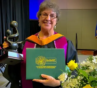 We are honored to be able to present The DAISY Award for Extraordinary Faculty to Peg Farrar, a nurse who has been a dedicated healthcare provider and educator for many years. She has influenced the future nursing practice of more individuals than I can count.
